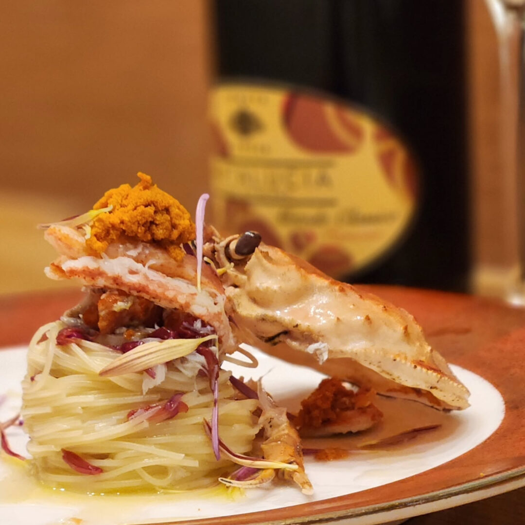 11月12月限定の解禁食材です!たっぷりの内子をもったメスのズワイ蟹を冷たいパスタと一緒に是非