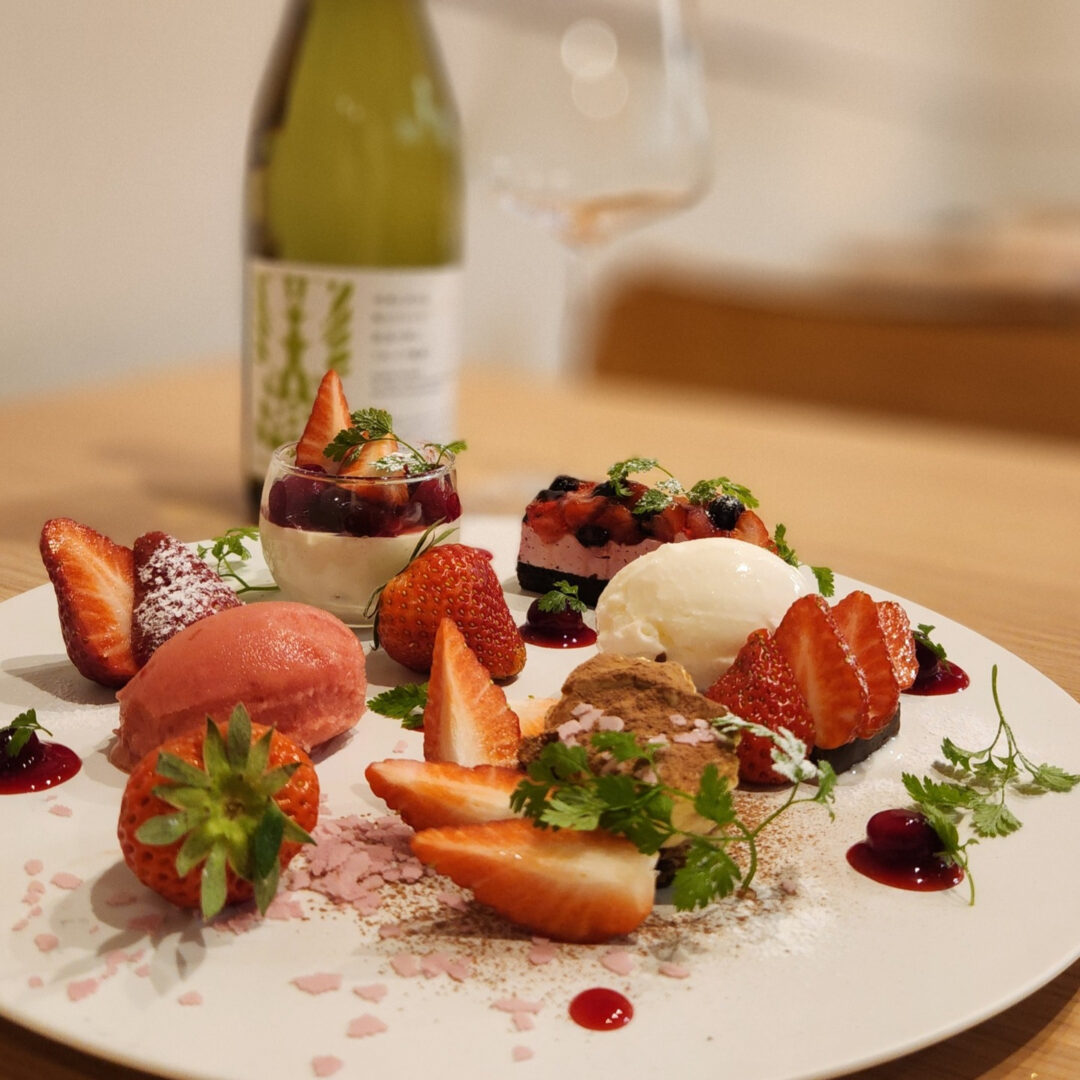 「べにたま」「あまりん」など数種の苺をふんだんに使用したデザートプレート(デザートは7種ほどを予定)と「東北ワインの飲み比べ」を楽しんでいただけるイベントです!!